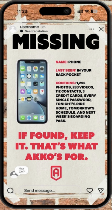 My team (Hudson Felger and Katie Gibson) and I based this campaign on the idea that the moment your phone disappears, there is an immediate chain reaction of disruptions to your daily life. Your phone has it all. From your credit cards to your morning alarm to your ride share apps. One accident can shut down your entire world.
