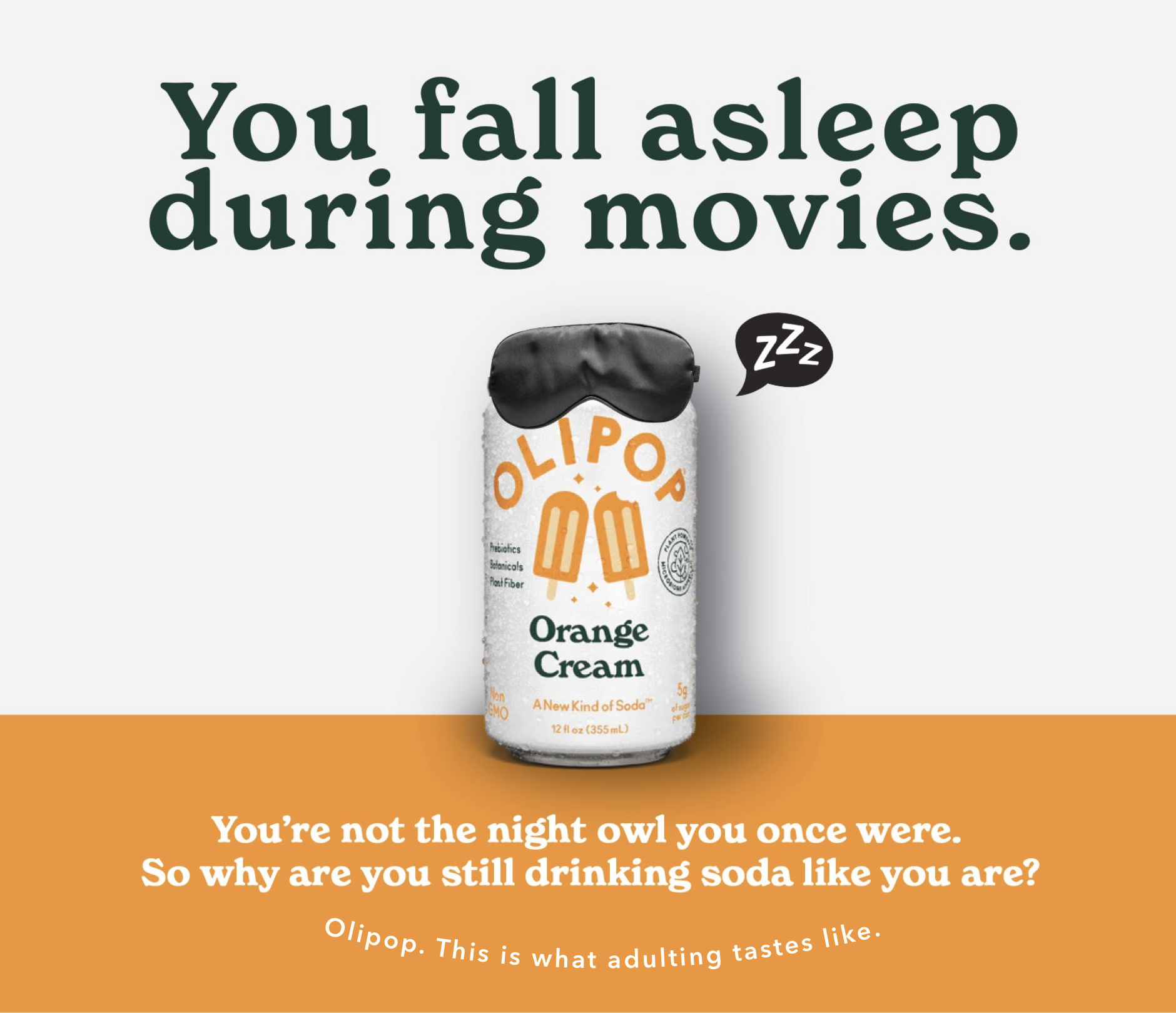 My team, Katie Gibson, Hudson Felger, and I created a campaign with the insight that as you become an adult, you start to value and do things that you hadn’t before. We wanted to convey the idea that Olipop offers a mature alternative to soda that will align with your preferences now that you are older.